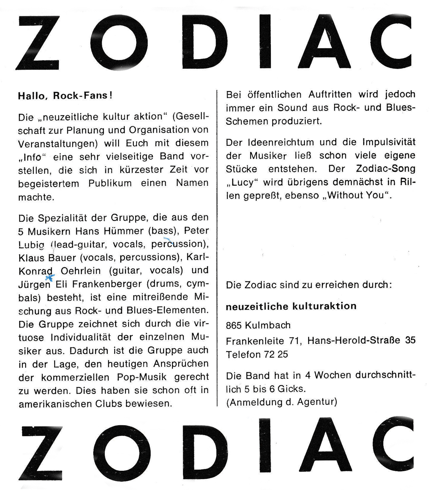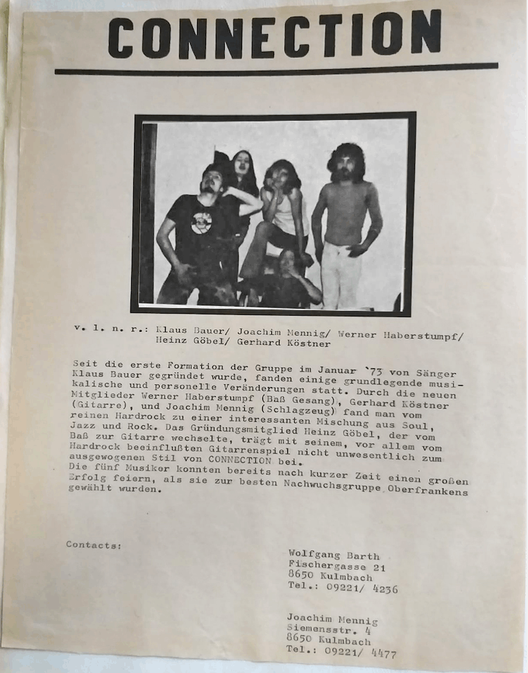 Klaus Bauer, voc, perc Peter Lubig, git, voc, perc Jürgen Eli Frankenberger, dr Hans Hümmer, bass Karl Konrad Öhrlein, git, voc